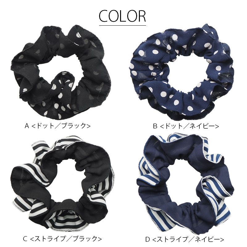 商品名 シュシュ リバーシブル ドット・ストライプ (syu-247) STAFFコメント 裏表でちがったデザインを楽しめるリバーシブルシュシュ。