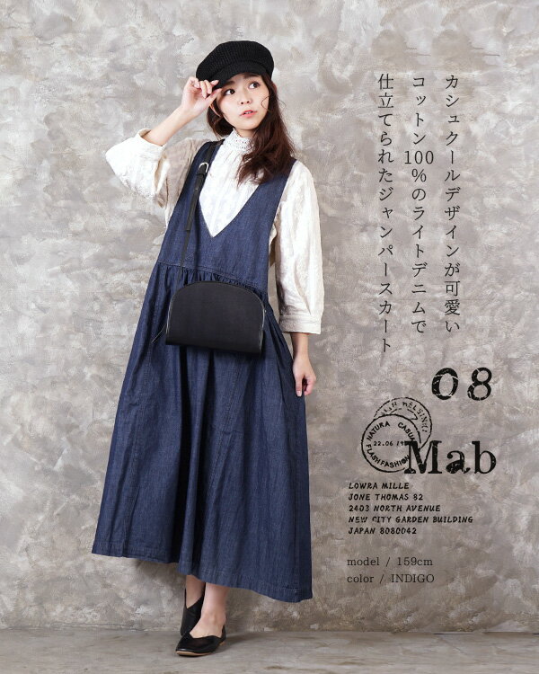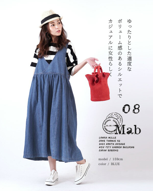 ジャンパースカート / ライトデニムの ジャンスカ レディース ロングワンピース スカート ロングスカート ロング 膝下 ひざ下 綿100% コットン デニム F-219G11 マブ 08マブ 春 ◆08Mab(ゼロハチマブ):デニム ジャンパースカート