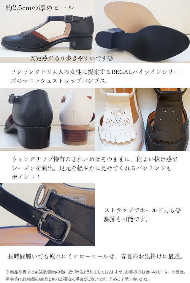 ■商品説明 リーガル REGAL F32K レディース パンプス ストラップ 本革 レザー BL(ブラック)WT(ホワイト)ワンランク上の大人の女性に提案するREGALハイラインシリーズのマニッシュストラップパンプス。