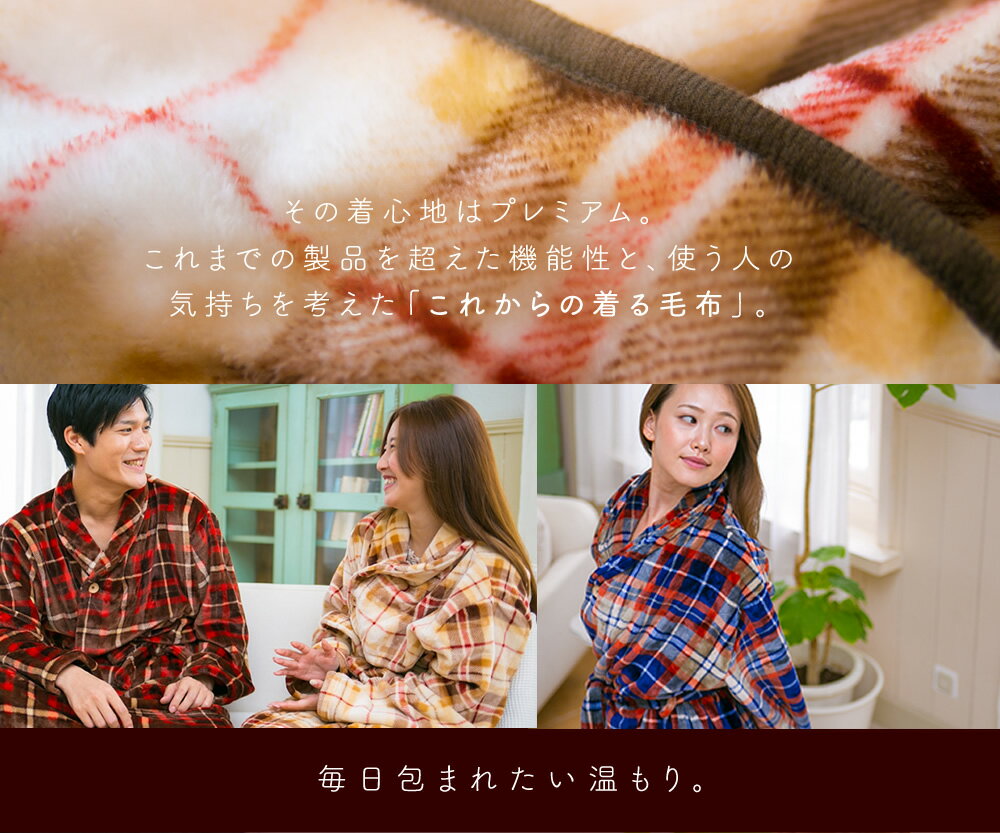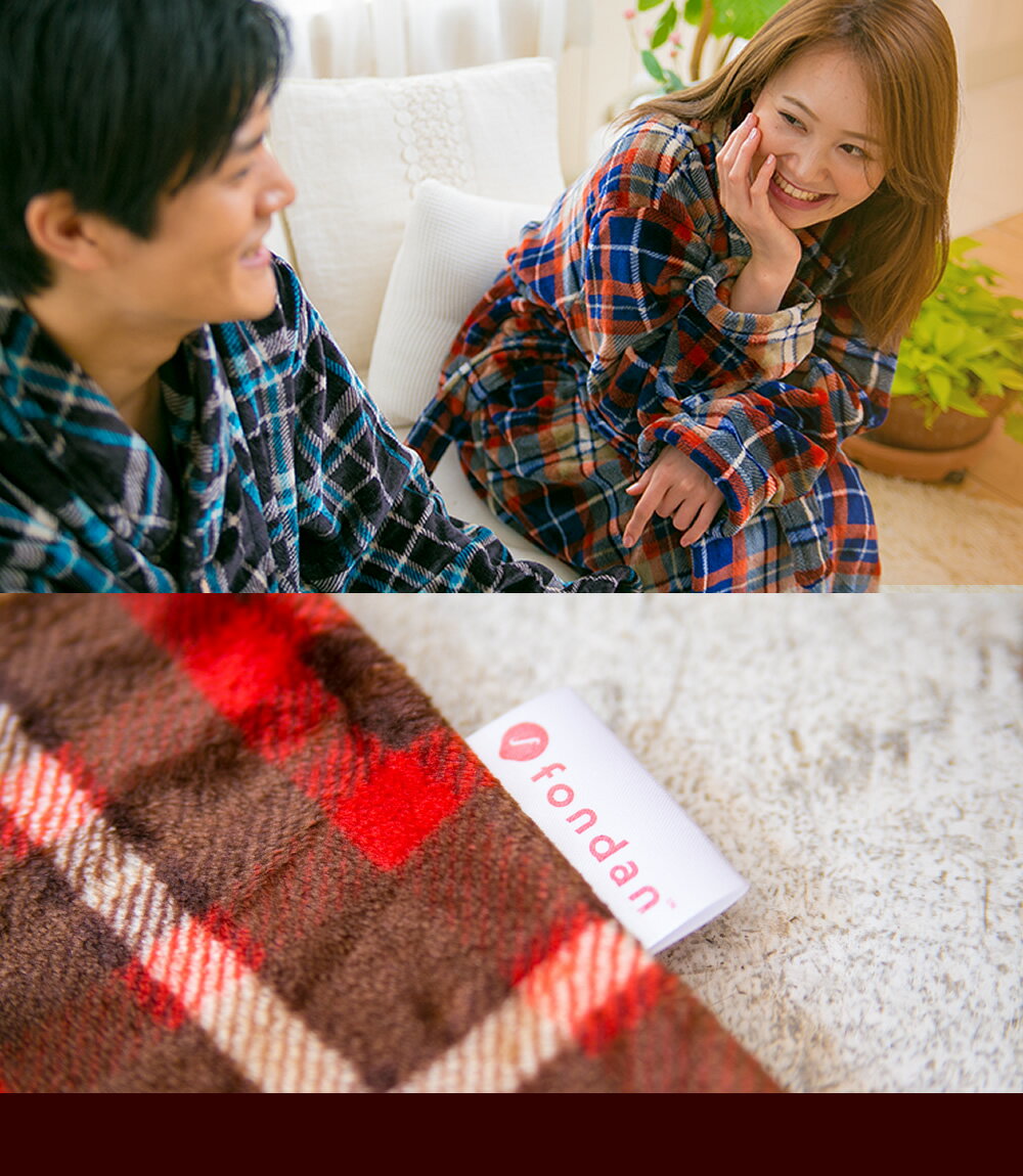 着る毛布 fondan プレミアム(チェック) S・M・Lサイズ FDPMR-054ルームウェア メンズ レディース ガウン ブランケット バスローブ 部屋着 寝間着 もこもこ 袖付き あったか 男女兼用【D】 【送料無料】【◇2018冬】